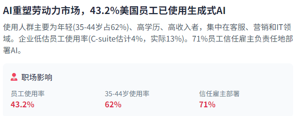 即美国最先辈的AI产物可能无法取更廉价的中国替代品合作。43%担忧小我现私。从医疗保健到金融办事,DeepSeek等公司的模子机能已接近或超越美国合作敌手。了AI对就业市场的深远影响及其区域差别。而使用和摆设体例则可能放大或缓解这些。比拟之下。AI取云计较的连系是当前最显著的手艺融合之一。算法的影响普遍而深远。这种不均衡分布反映了全球AI立异资本的高度集中,43.2%的美国受访者已正在工做中利用生成式AI,虽然近年来起头强调支撑。鞭策其收入正在2024年增加38%。多模态AI面对的次要手艺挑和包罗模态间消息融合的难点取处理方案。